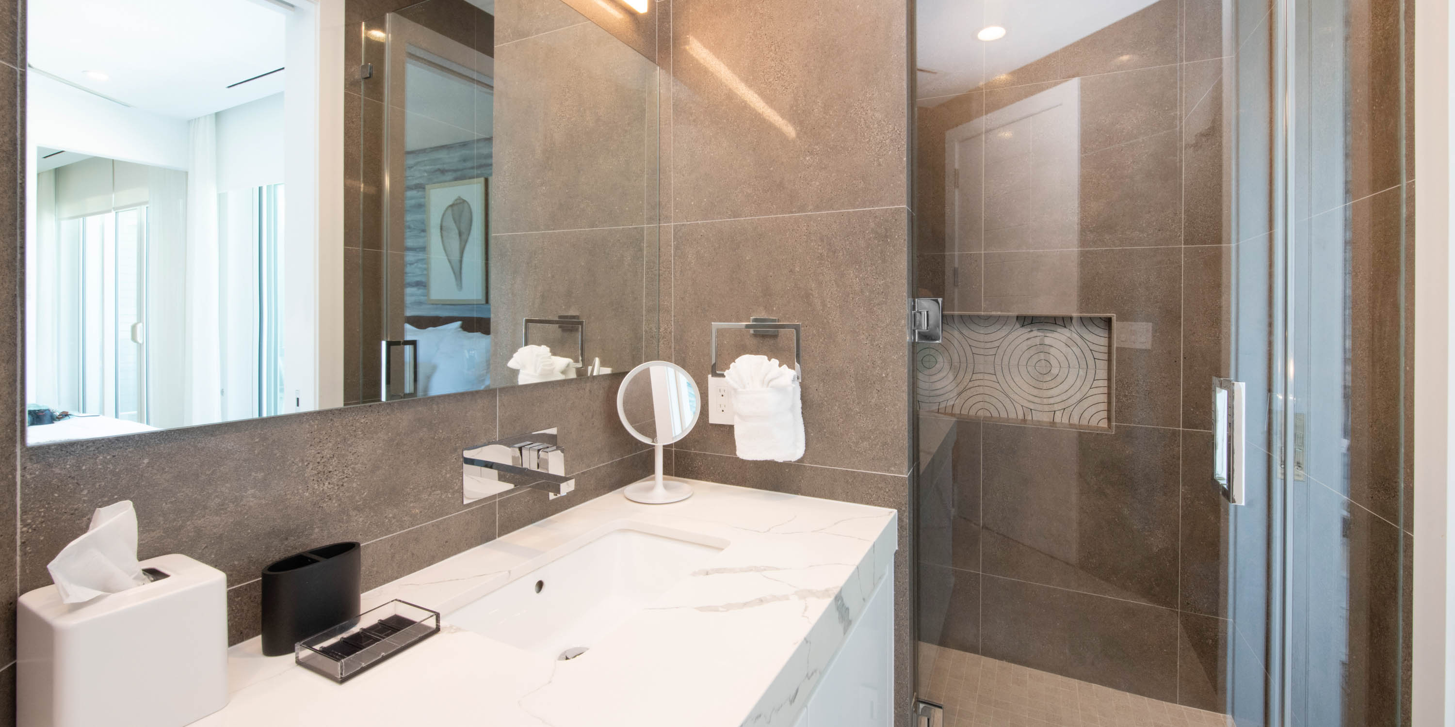 - Primary Suite: king bed, ocean views, walk-out access to the balcony, SmartTV, ensuite with shower.